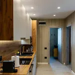Apartamentul include o bucătărie complet mobilată, perfectă pentru oaspeții care doresc să își prepare mesele singuri.